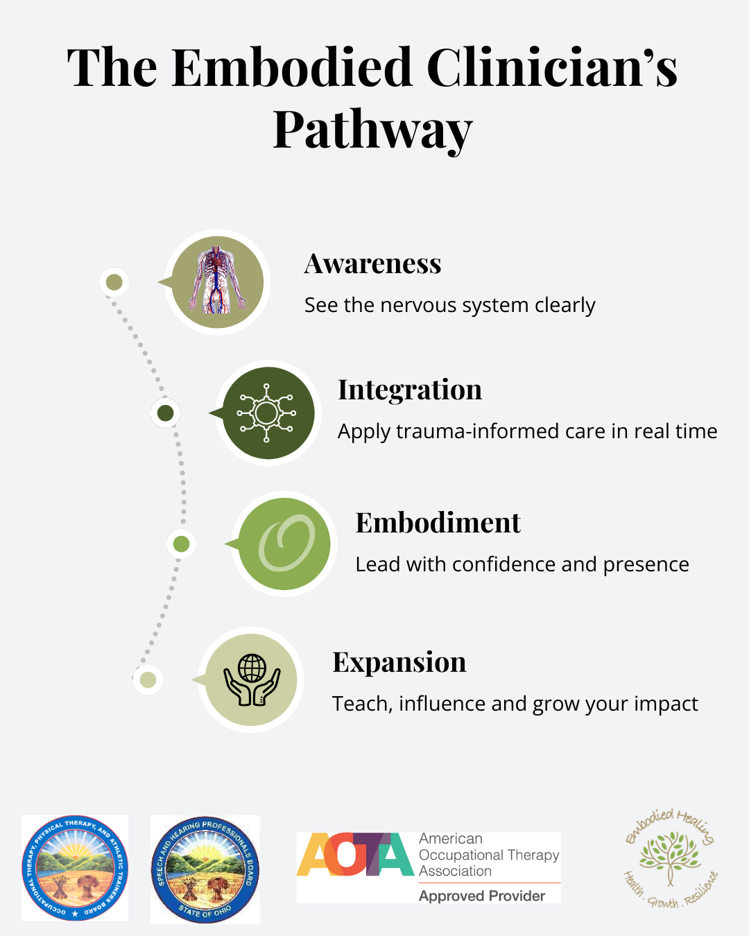 Embodied Education: Clinician to Educator (6 CEU) - learn how to translate your knowledge into meaningful education—designing and delivering trainings that inspire, engage, and create lasting change in others.